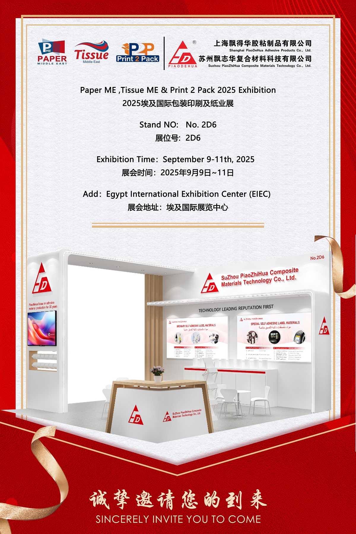 Компания SuZhou PiaoZhiHua рада принять участие в выставке Paper ME, Tissue ME & Print 2 Pack 2025, крупной региональной платформе для упаковочной, полиграфической и бумажной промышленности, которая пройдет с 9 по 11 сентября 2025 года в Египетском международном выставочном центре (EIEC) в Каире. Являясь ведущим поставщиком самоклеящихся этикеточных материалов, компания Piaozhihua представит на стенде № 2D6 свой широкий ассортимент обычных и специальных клейких продуктов, подчеркивая решения, предназначенные как для стандартных, так и для требовательных применений.